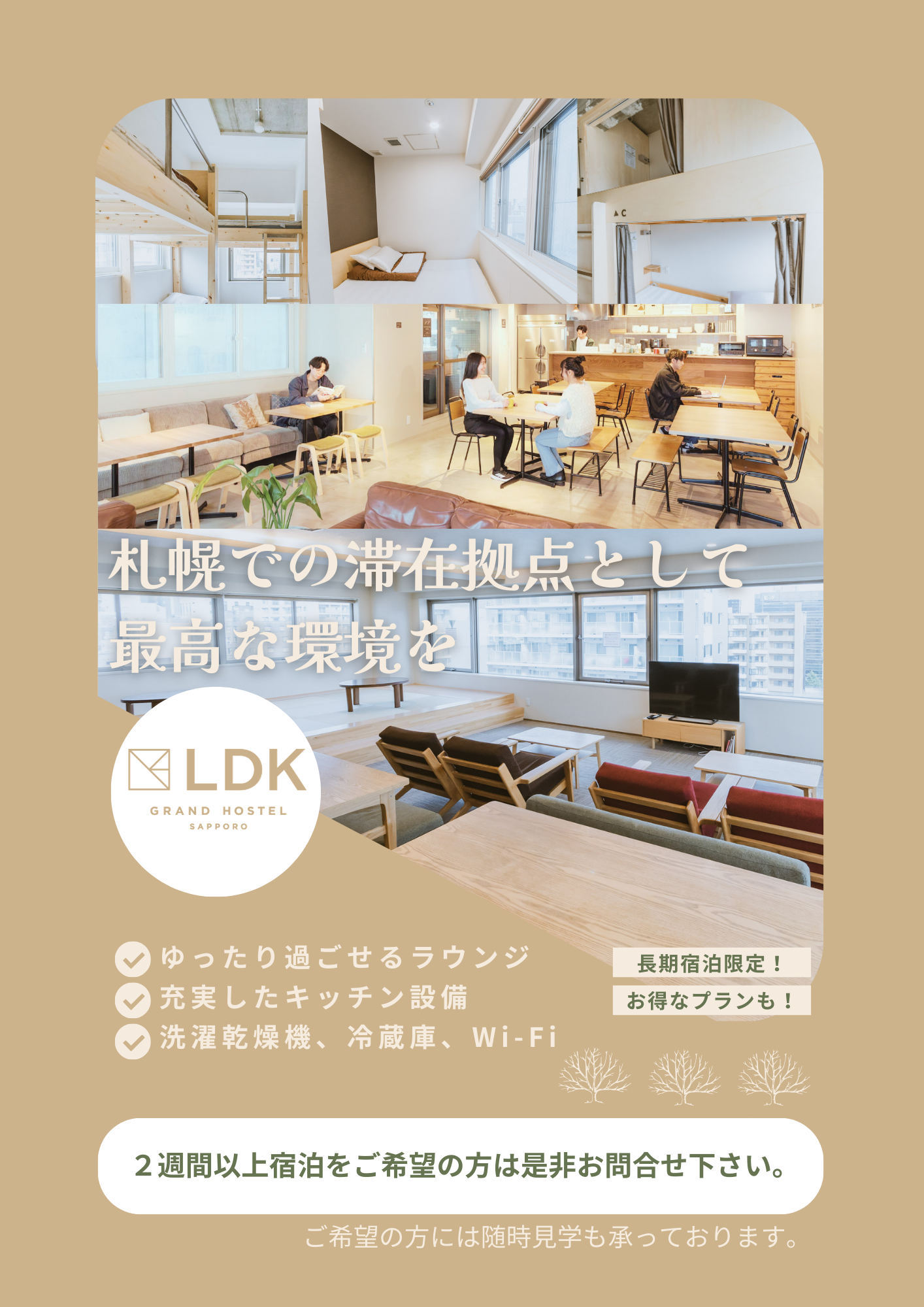GRAND HOSTEL LDK 札幌は、札幌の中心部にある観光スポットや大通公園、すすきのへのアクセスもよく観光に便利な立地です。